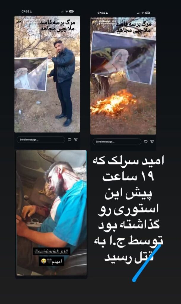 ایران اینترنشنال: پیکر امید سرلک، جوان اهل الیگودرز استان لرستان، پس از انتشار ویدیویی از به آتش‌ کشیدن تصویر علی خامنه‌ای، رهبر جمهوری اسلامی، در داخل یک خودرو پیدا شد. فرمانده انتظامی الیگودرز علت مرگ او را «خودکشی» اعلام کرده، اما برخی کاربران شبکه‌های اجتماعی آن را «قتل حکومتی» دانسته‌اند.علی اسدالهی، فرمانده انتظامی الیگودرز، یک‌شنبه ۱۱ آبان از کشف پیکر جوانی در یک خودرو در محدوده پشت ورزشگاه ارسلان گودرزی (زیر پل) خبر داد و بدون اشاره به هویت او گفت این فرد با یک قبضه سلاح کلت کمری خودکشی کرده است.او در عین حال تاکید کرد: «موضوع در دست بررسی تخصصی پلیس آگاهی است تا انگیزه و علت دقیق حادثه مشخص شود.»شماری از کاربران شبکه‌های اجتماعی نام این شهروند را امید سرلک عنوان کردند و نوشتند ماموران پیکر او را به خانواده‌اش تحویل نداده‌اند و آن‌ها را تحت فشار گذاشته‌اند تا بگویند که خودکشی کرده است.