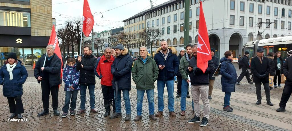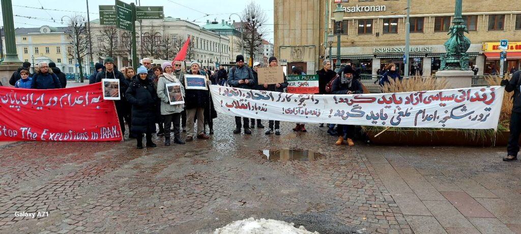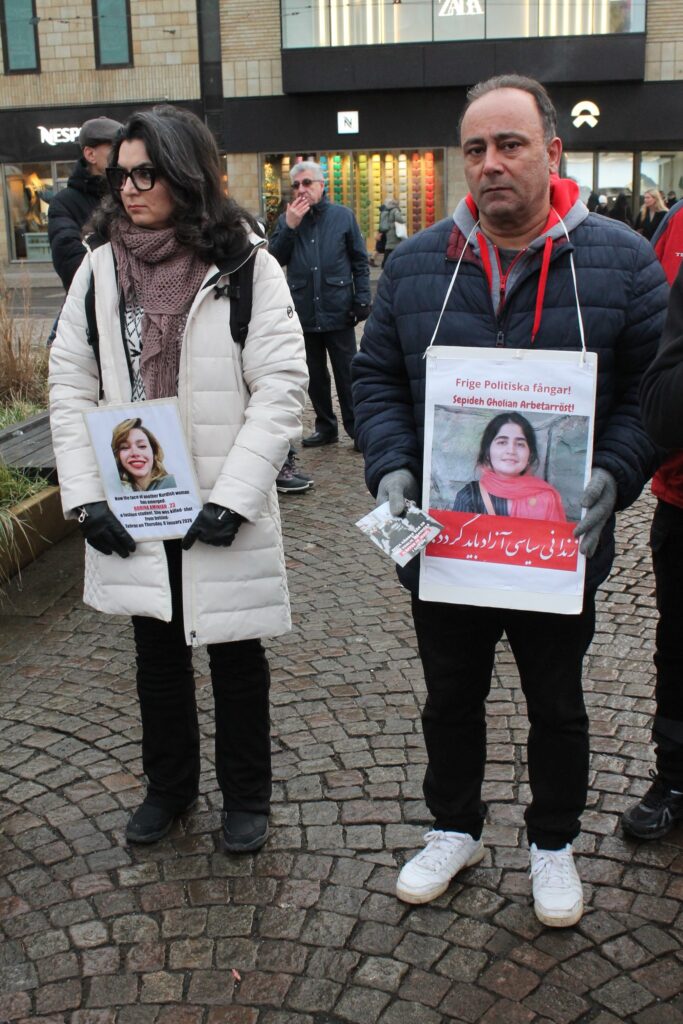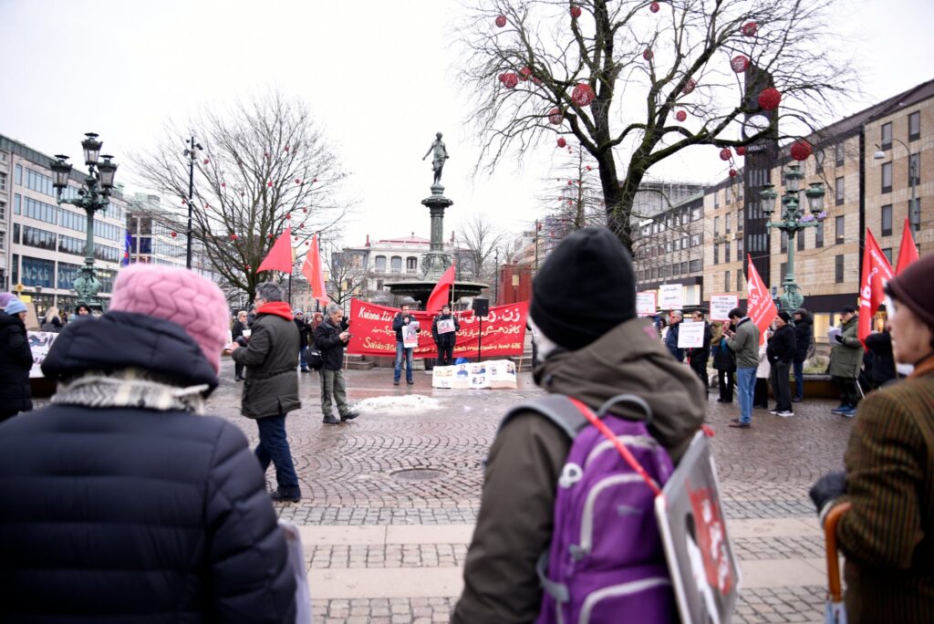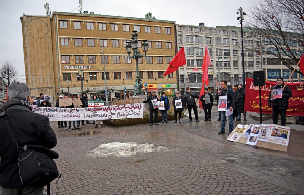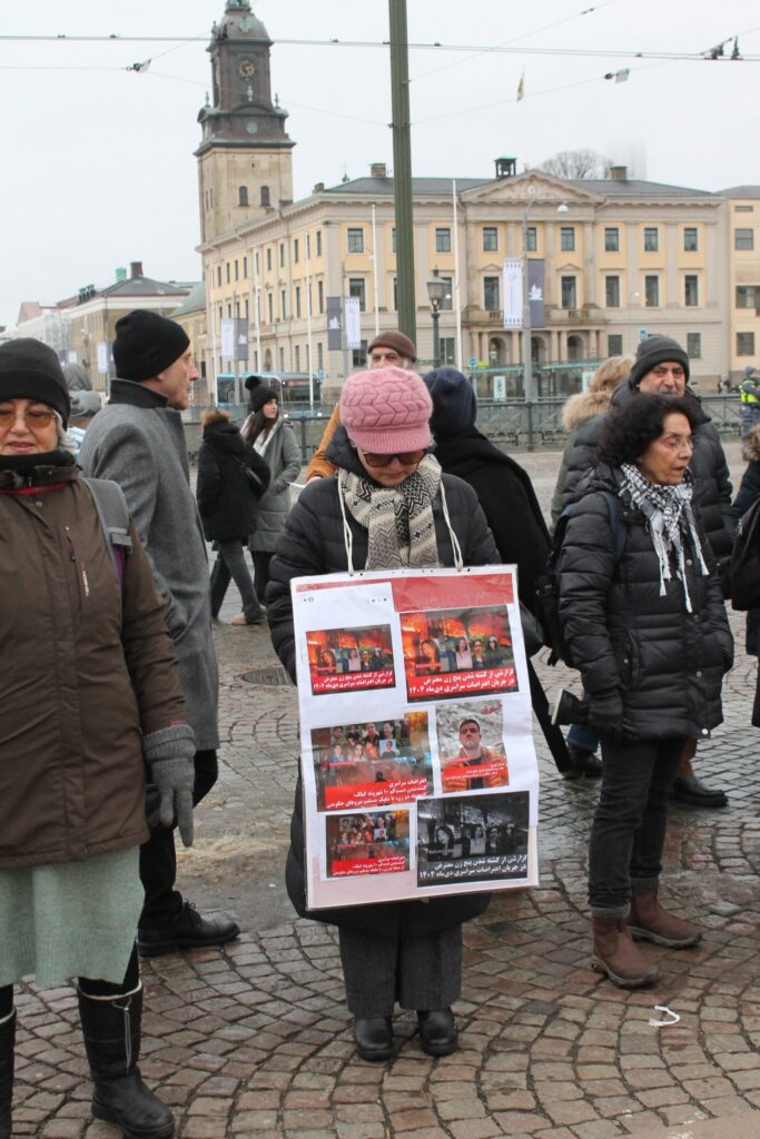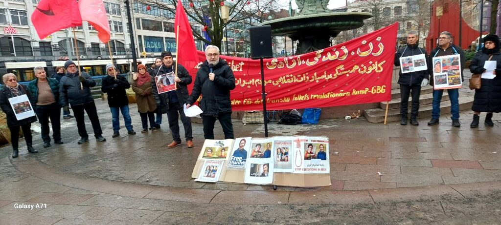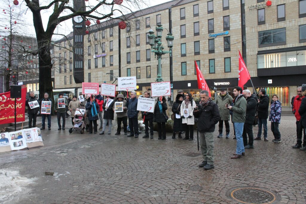 در این آکسیون که به دعوت کانون همبستگی با مبارزات انقلابی مردم ایران برگزار شد، سخنرانان به زبانهای فارسی و سوئدی ضمن تشریح شرایط دهشتناک حاکم بر ایران و سرکوب گسترده و خونین مردم به دست نیروهای سرکوبگر رژیم، حمایت کامل خود را از این مبارزات بیان نموده و اعلام کردند که آینده ایران با اراده مردم کشور و نه با دخالت نیروهای امپریالیستی و دست نشاندگان آنان بنا خواهد شد.